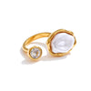 Deixe-se envolver pela beleza do Anel Ajustável Perolado, uma peça que combina sofisticação e modernidade. Com pérolas barrocas simuladas e zircônia cúbica reluzente, esta joia é perfeita para quem busca elegância em aço inoxidável banhado a ouro 18K. Ideal para todas as ocasiões, seja para um dia de trabalho ou para presentear alguém especial.